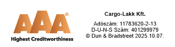Mivel a Dun & Bradstreet minősítés nemcsak cégünk jelenlegi pénzügyi stabilitását mutatja, hanem a Dun & Bradstreet minősítés kialakításának köszönhetően azt is, hogy ez elkövetkező egy évben milyen valószínűséggel válik fizetésképtelenné vállalkozásunk, büszkén állíthatjuk, hogy a Cargo-Lakk Kft. a jövőben is stabil szereplője lesz a piacnak.